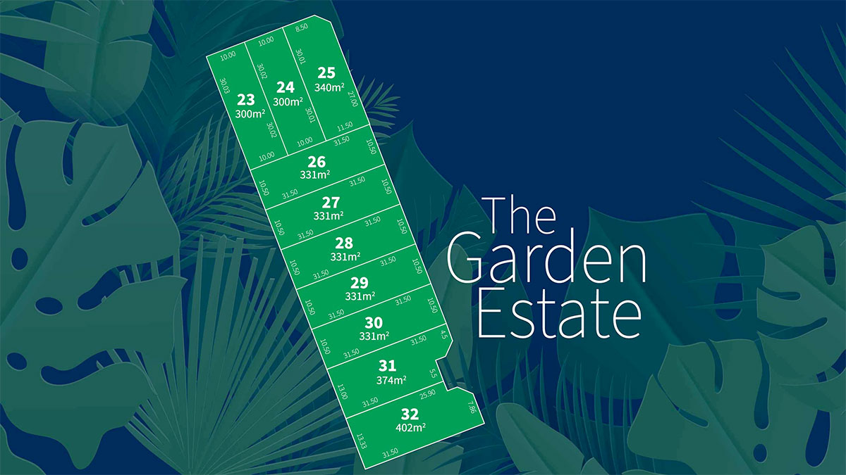 The Garden Estate comprises of 10 allotments ranging from 300m² to 402m².